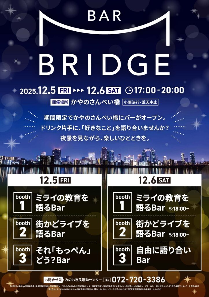Bar Bridge 実行委員会【構成団体 : (特活)市民活動フォーラムみのお(みのお市民活動センター指定管理者)、東急不動産SCマネジメント株式会社(みのおキューズモール)、一般社団法人カンデ、株式会社モリタ、イーチ合同会社】